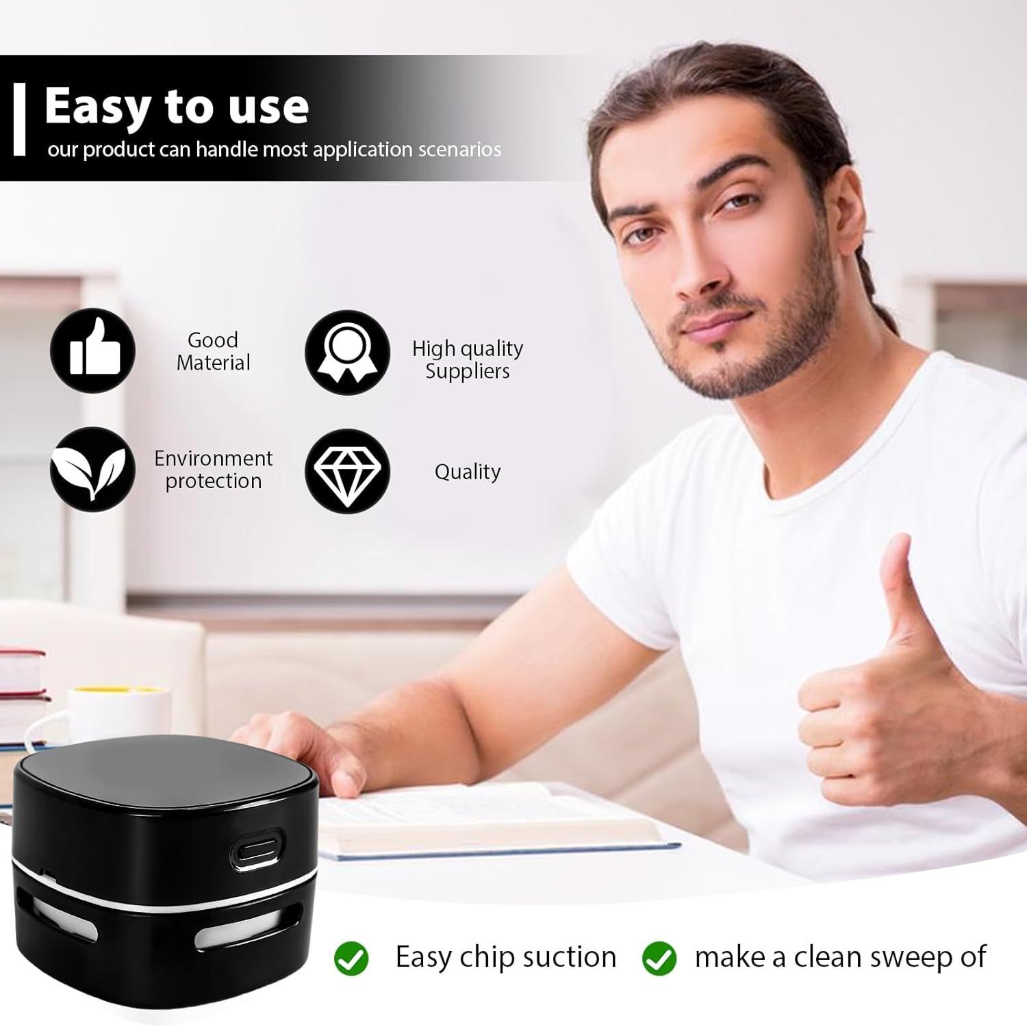 KYAOAYO-Mini Aspirateur De Table Usb Rechargeable, Puissant Et Silencieux Pour Bureau, Voiture Et Maison Avec Fonction Nettoyage Pratique
