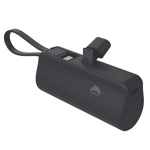 Mobitel Mini batterie externe portable 5000 mAh avec entrée USB C, connecteur de type C intégré et câble compatible iPhone, batterie de secours compatible avec iPhone et appareils Android