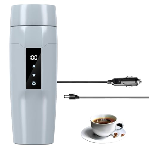 12V voiture chauffage électrique bouilloire avec contrôle de la température,40~100℃ réglable,mini portable tasse d'eau électrique,anti-fuite,80W chauffage rapide isolation tasse,arrêt automatique,Gray