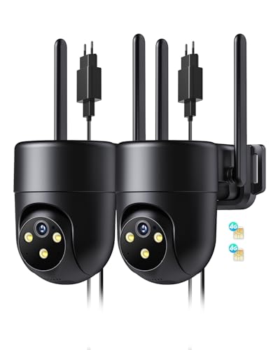 Xega 4G LTE Caméra Surveillance avec Carte SIM【24/7 Enregistrement】 2K HD Camera Exterieur Filaire, AI Détection Humaine Suivi Automatique Spotlight Sirène, IP66 Stockage TF/Cloud, Carte SIM Incluse