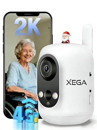 Xega 4G LTE Camera Surveillance avec Carte SIM, 2K Caméra sans Wi-FI Extérieur/Interieur,Pan 180,Batterie 10000mAh,Détection Humaine PIR,Vision Nocturne Couleur,Audio Bidirectionnel, Voyage/Camping