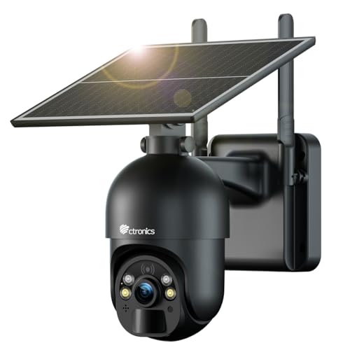 Ctronics 3G/4G LTE Caméra Solaire, Camera Carte Sim sans Fil 4g【2,5K HD, PTZ, IP66】 Audio Bidirectionnel, 355°/90° Détection Humaine PIR, Caméra Solaire Compatible avec Téléphone/Tablette/Ordinateur
