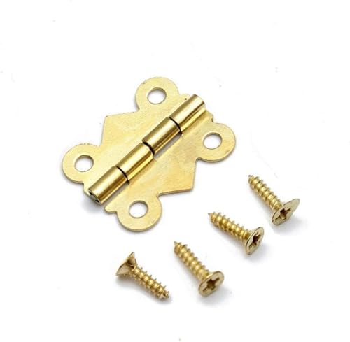 Petites Charnières Mini Charnière avec 200pcs Vis Charnière Miniature pour DIY Boîte Modèle Jouet Ouvrages D'art Artisanat 24 * 16mm Doré 50 Pièces