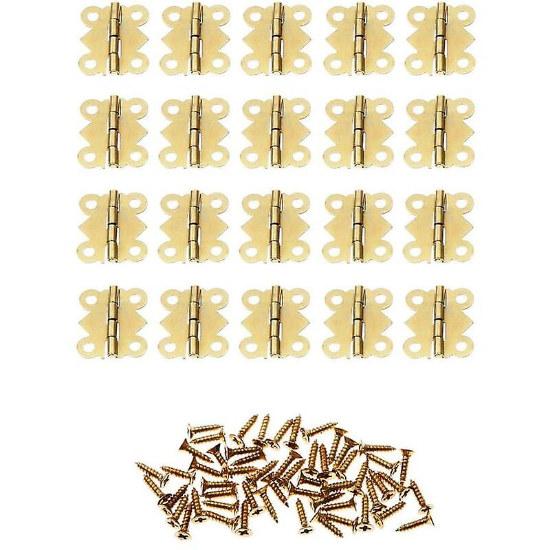 Lot de 20 mini charnières papillon dorées en fer, 20 x 17 mm, 4 trous, pour porte d'armoire, tiroir, boîte à bijoux, avec vis