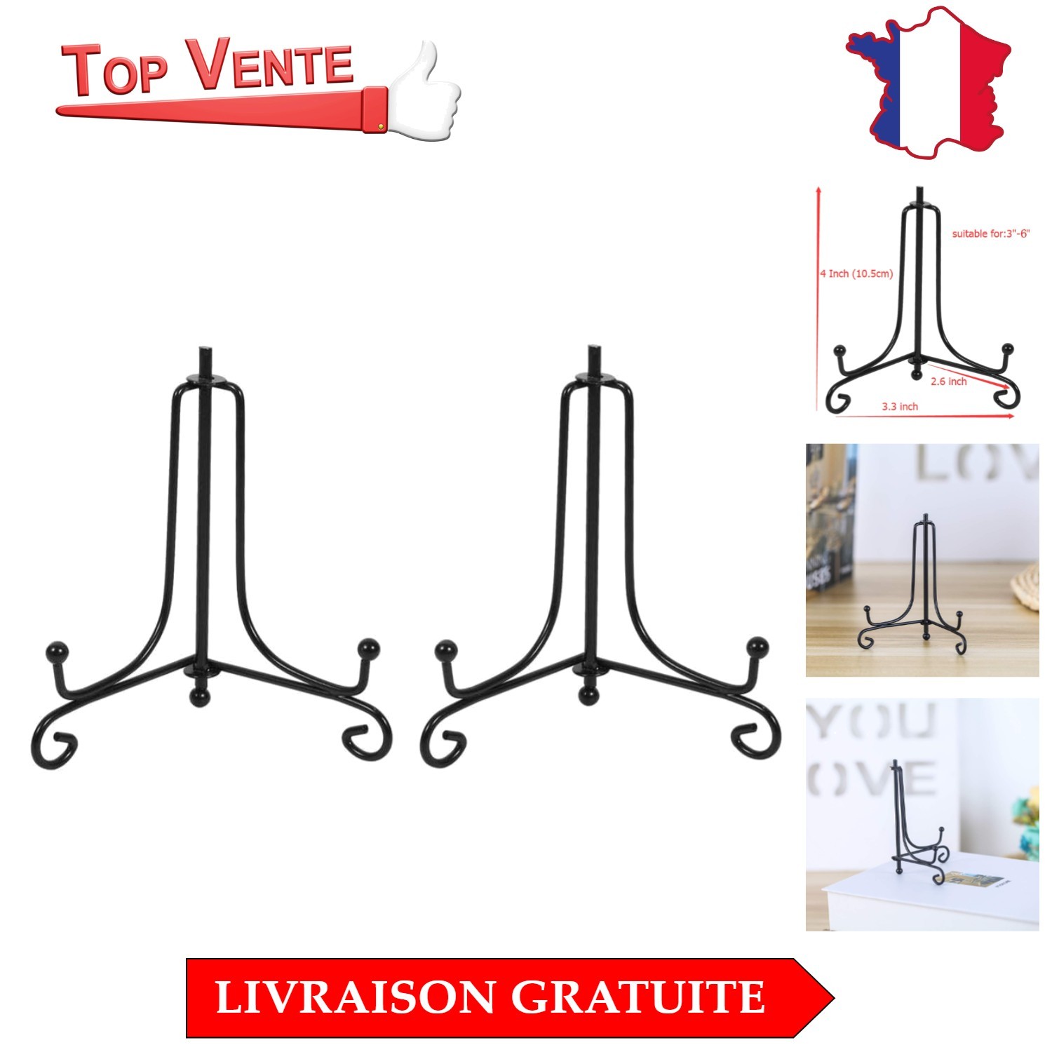 Tincogo Petits Chevalets Décoratifs en Métal - Lot de 2 Présentoirs pour Photos, Cartes, Numéros de Table et Mini Toiles - 10,5 cm - Noir
