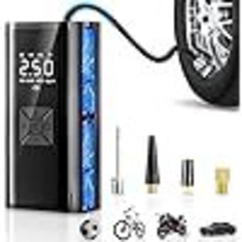 Tonchean Compresseur,Compresseur à Air Portatif,150 psi Gonfleur Pneus Voiture,3x2000mAh Mini Compresseur Pneu 12V,Pompe Pneus avec écran lcd