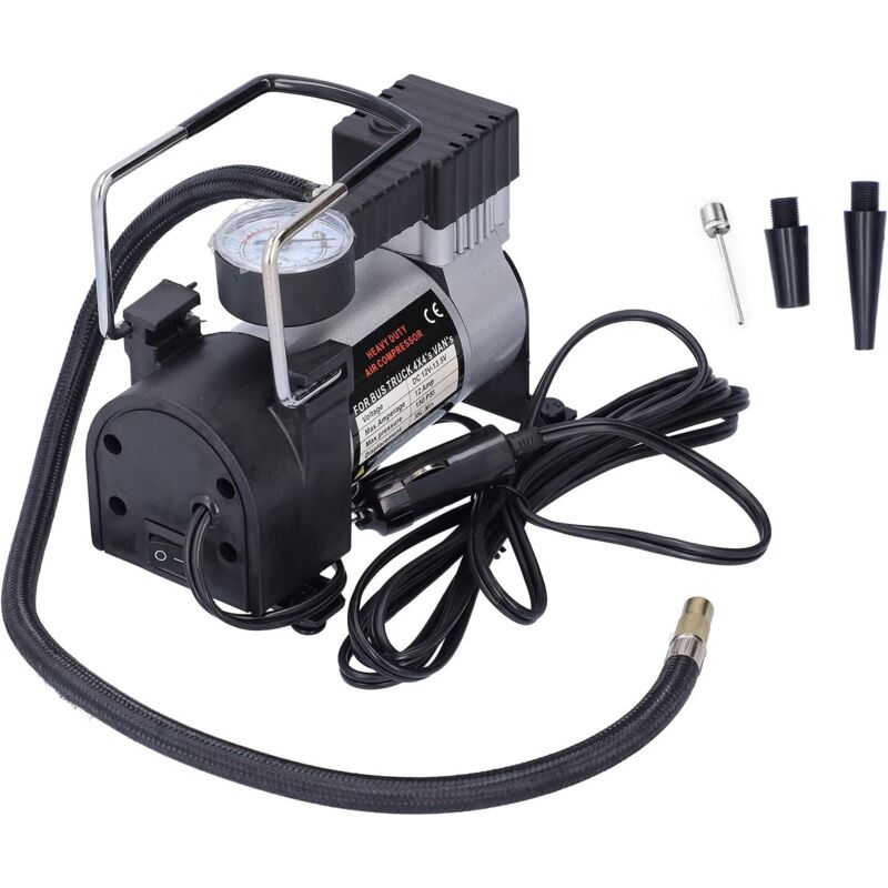 Eufab – Compresseur mini 21066 12V 17 bar – Manomètre analogique – Gonfleur pneus voiture, moto, vélo – 3 adaptateurs inclus