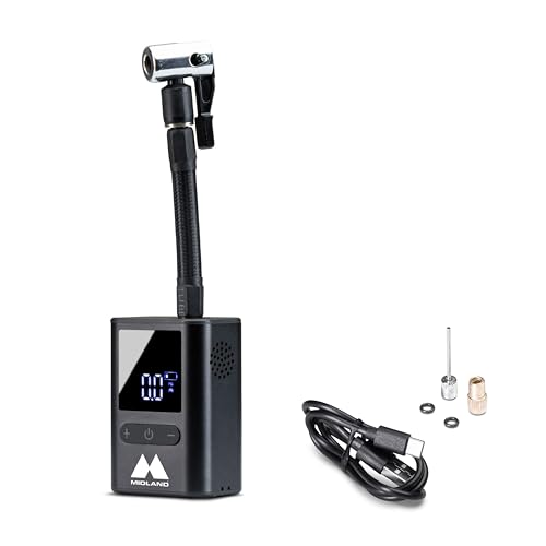 Midland ENERPUMP Mini - Compresseur d'air portatif 100 PSI/6 Bar, Batterie Externe, Format de Poche, Noir