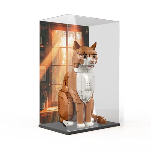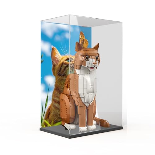 Lego 21376 Vitrine en acrylique pour chat orange - Boîte de rangement étanche à la poussière - Boîte de rangement transparente - Compatible avec Lego 21376 - Mini figurines empilables (pas de modèle