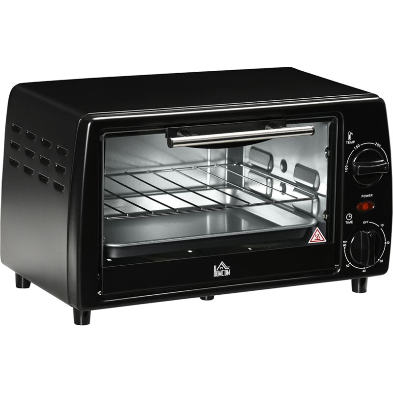 Four homcom mini 10 l 750 w jusqu'à 230 °c avec minuterie 60 minutes, petit four électrique avec plaque et grille de cuisson, 36,5 x 26 x 22 cm, noir
