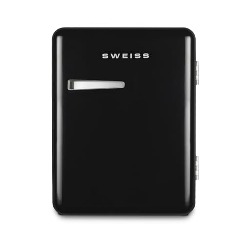 SWEISS Mini Bar Vintage 31L WEISS9, Mini Frigo Compact Design Rétro, Réfrigérateur Silencieux 24 dB pour Chambre, Bureau, Boissons ou Cosmétiques, Température réglable 6°-15°C, Noir