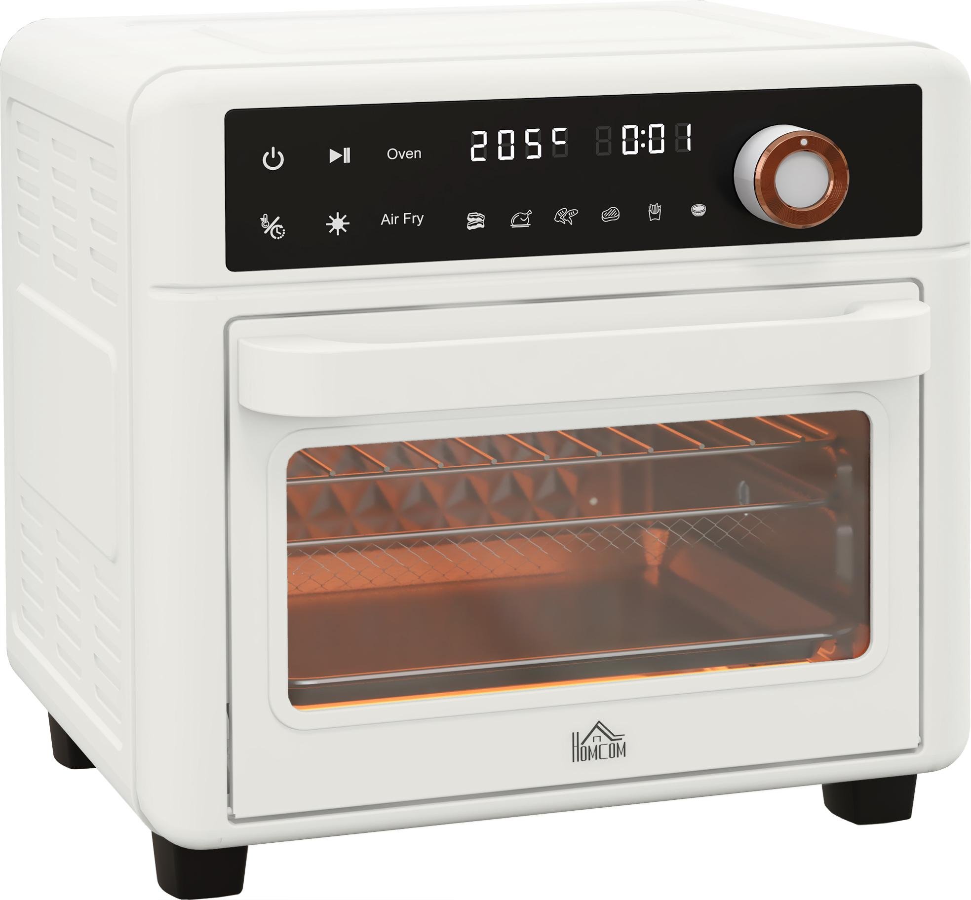 HOMCOM Mini Four électrique Friteuse à air 2 en 1 Capacité 13L Four Grille-pain 1200W avec 12 modes de chauffage Minuterie et température réglable Crème