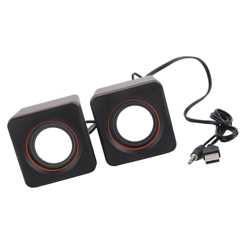 KIMISS Prise Casque Petits Haut-parleurs Petits Haut-parleurs de Bureau Mini Cube en Plastique Noir USB Stéréo 3,5 Mm Jack Haut-Parleur Filaire pour Ordinateur Portable de Bureau Cfor (binaural)