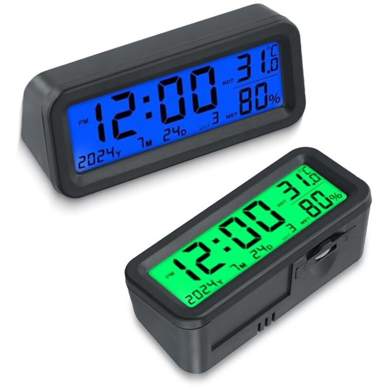 Thermomètre-horloge numérique à pince pour voiture Mini horloge pour voiture avec écran lcd rétroéclairé pour camions et voitures (rétroéclairage