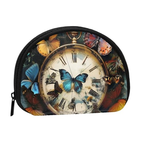 Porte-monnaie imprimé avec horloges papillons, pochette portefeuille, mini sac de rangement, sac de maquillage pour femme et fille, Noir , Taille unique, Pochette à monnaie