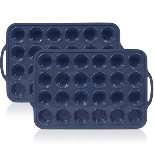 SUPER KITCHEN Lot de 2 Mini Moule à Muffins 24 Moules en Silicone Plaque à Muffins Anti-adhésif Moule à Pâtisserie pour Muffins, Cupcakes, Brownies, Pudding 34 x 23 x 2,5 cm (Gris)