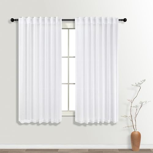 KOUFALL White Short Curtains for Kitchen Bedroom Small Window,Sheer Privacy Linen Mini RV Curtains for Camper Windows,45 inch Length