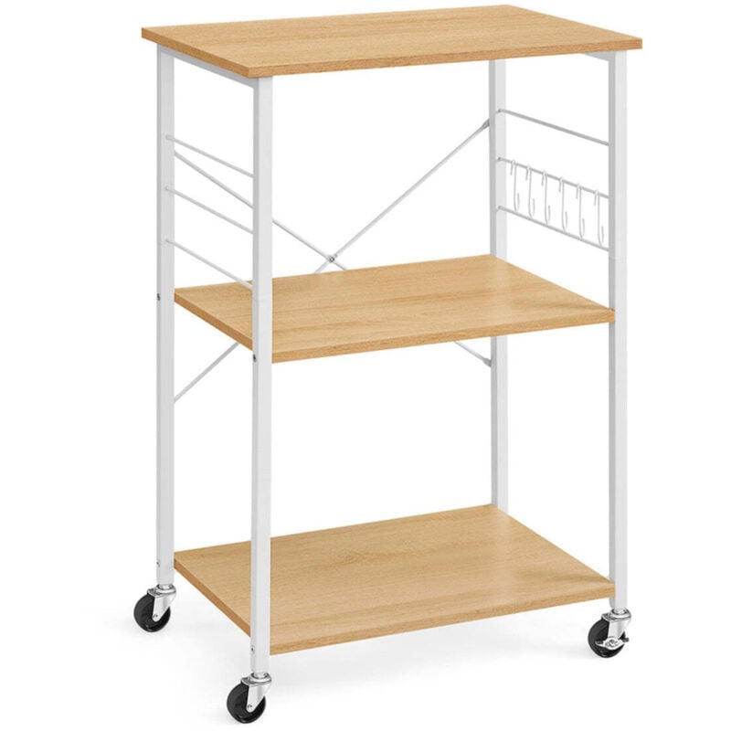 Étagère de cuisine desserte chariot de service à 3 niveaux oour four à micro-ondes mini four grille-pain cadre métallique avec 6 crochets style