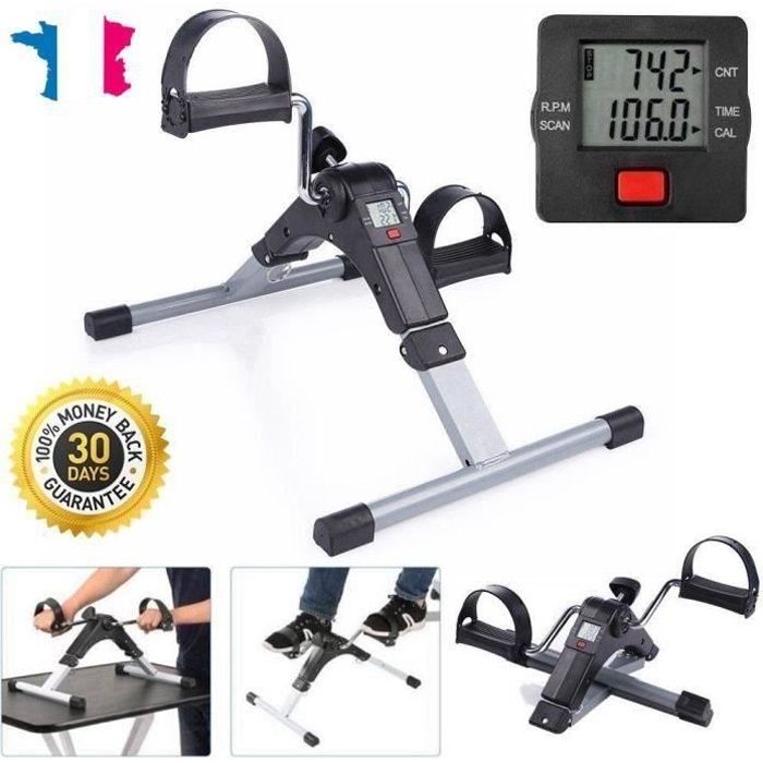 Vélo elliptique sous table - Mini pédalier - 3 niveaux de réglage - Télécommande - Écran LCD - Blanc