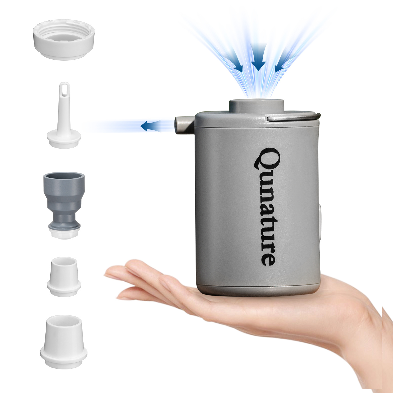 Qunature Pompe à air électrique 800mAh, Mini pompe de gonflage/dégonflage, Avec 5 buses d'air, pour bateau gonflable/matelas gonflable/piscine, Gris