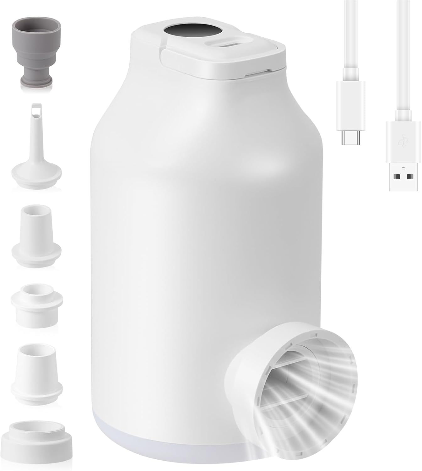 Pompe à Air Électrique pour Matelas Lits Gonflable, Sacs de Rangement Sous Vide – Mini Portable, Rechargeable, Gonflage & Dégonflage Rapide avec 5 Buses, Lumière LED, Arrêt Auto pour Bouées de piscine