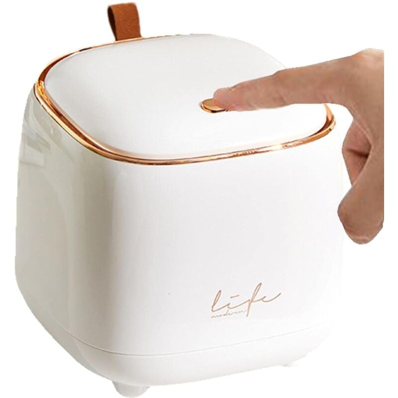 Ersandy - Poubelle de table avec couvercle, mini poubelle de table pour cuisine, salle de bain, bureau, toilettes, lit de voiture, anti-odeurs (blanc)