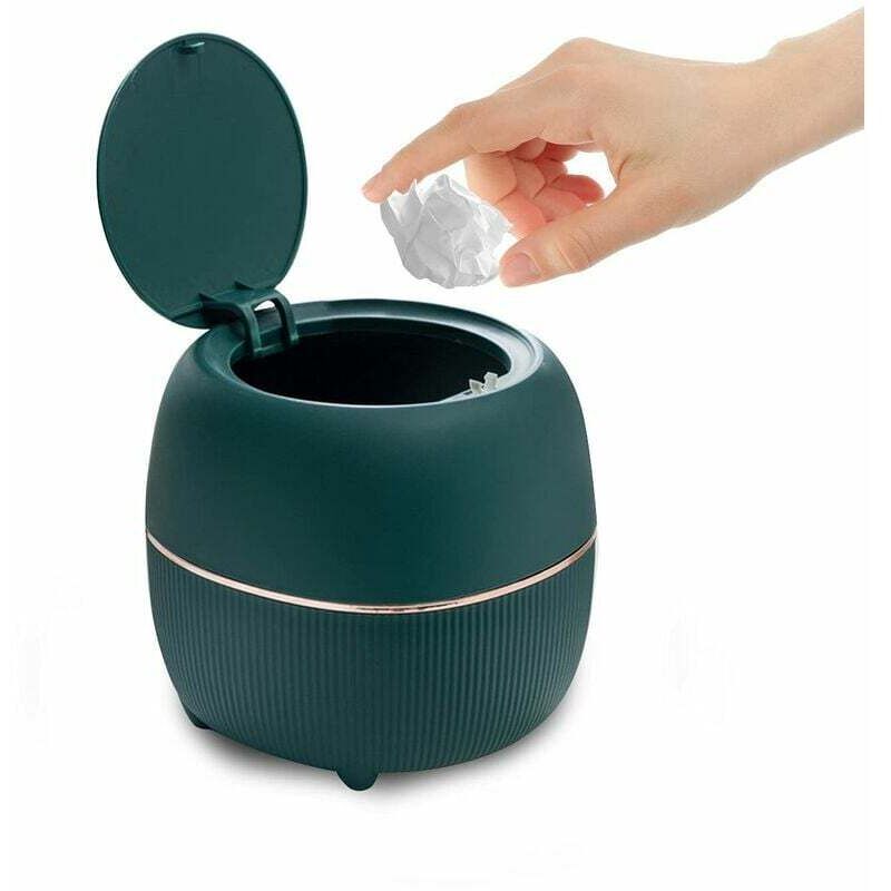 Mini poubelle de bureau ronde avec couvercle, plastique, pour la maison, la cuisine, la salle de bain, le bureau (vert)