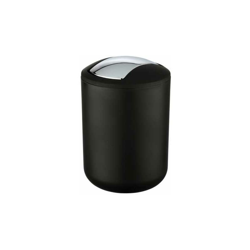 Poubelle Salle de Bain, Mini Poubelle Salle de Bain, couvercle basculant, Brasil s, capacité 2L, plastique pet incassable, ø14x21 cm, Noir - Wenko