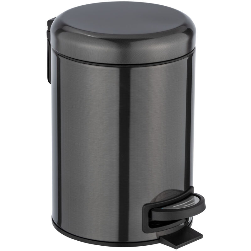Poubelle à pédale Leman, mini poubelle salle de bain, capacité 3L, acier inox, 17x25x22,5 cm, noir métallique - Wenko