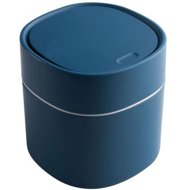 EKO Mini poubelle de bureau avec couvercle basculant, petite table ronde de 2 l pour bureau, maison, voiture (bleu)