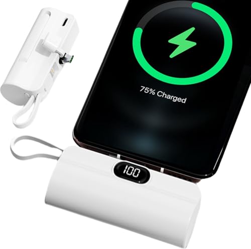 UFUZON Ishiva Mini Power Bank 5000 mAh USB-C, Chargeur Portable sans Fil Batterie Externe avec Écran LED, PowerBank Compatible avec USB-C et Téléphones Android, iPhone 15/16, Blanc