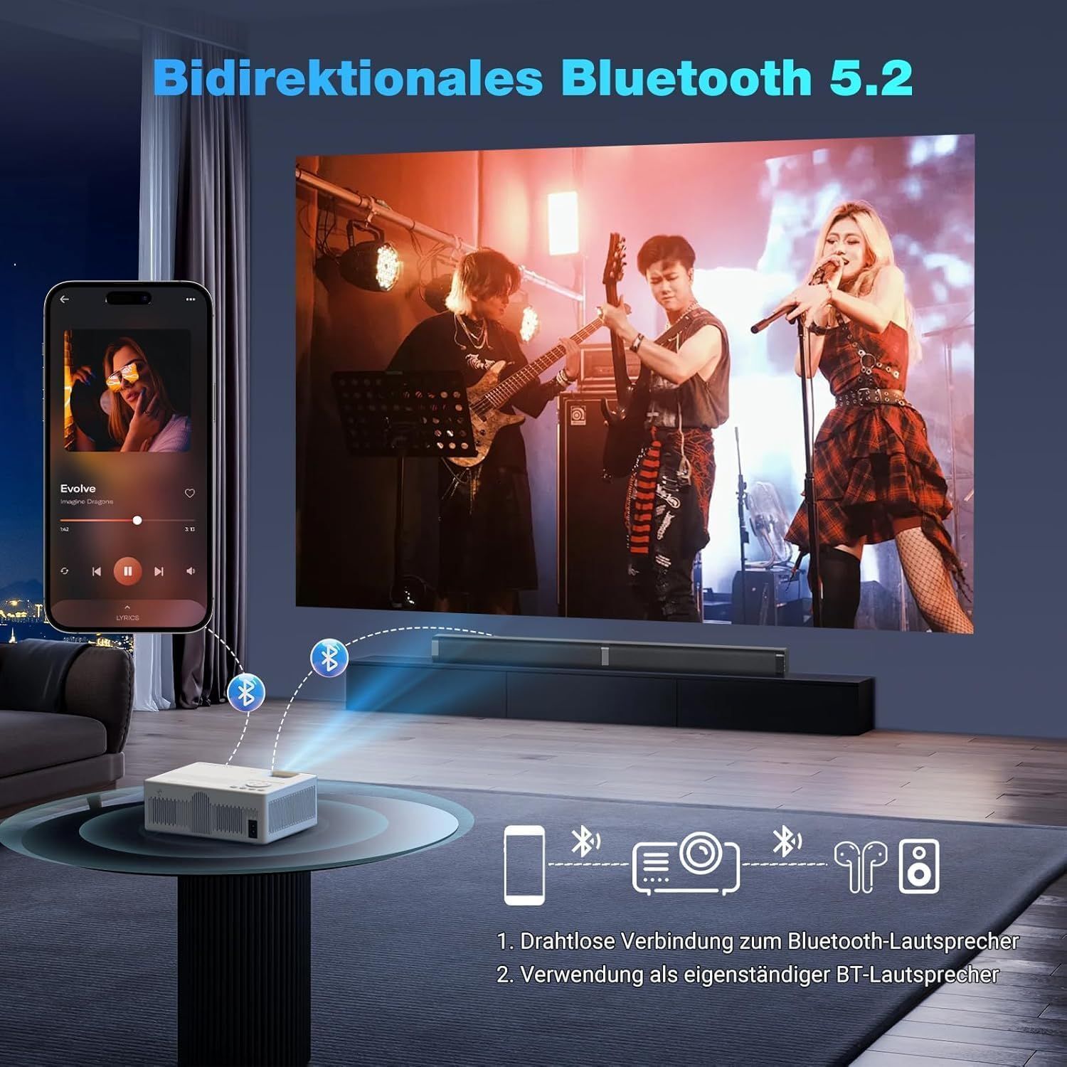 YEZMEK Projecteur 5G WiFi Bluetooth, Natif 1080P Mini LED Videoprojecteur, 4K Support Portable Rétroprojecteur Compatible TV Stick/Box, HDMI, USB, Android, iOS, Windows