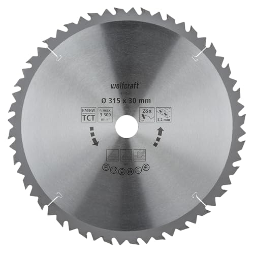 wolfcraft 6742000 1 Lame de Scie Circulaire de Table Ø 315 Mm, Ct, Alésage Ø 30 Mm, 28 Dents, Surface Poncée, Denture Sablée, Alternée argent