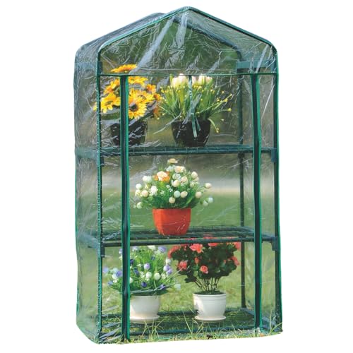 Mini Serre Verte >it avec 3 étagères – 69 x 49 x 124 cm – Serre de Balcon en PVC Pliable – pour Herbes aromatiques et Fleurs – Couverture Transparente avec Double Fermeture éclair