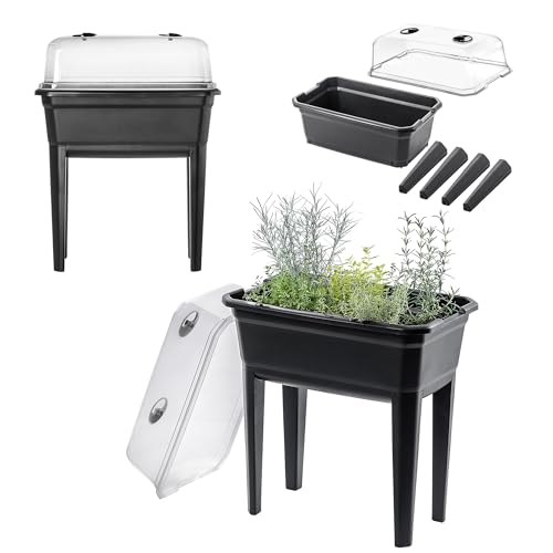 KADAX Table de Culture en Plastique 42L, Jardinière Équipée d'un Couvercle et de Ouvertures d'Aération, Mini Serre sur Pieds pour Cultiver Vos Plantes (74 cm)