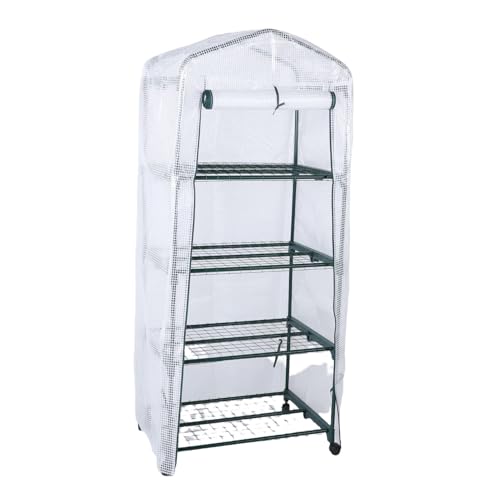 Oreilet Mini Serre, 4 Niveaux, 4 étagères, Serre Portable pour Intérieur et Extérieur avec Housse en PE Durable, Roues, Petites Serres Plastique pour Plantes, 27 X 19,3 X 62 Pouces (White)