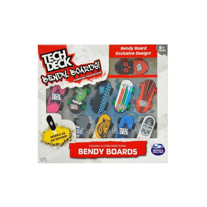 Coffret Tech Deck Bendy Boards : 10 Finger Skate - Planches caoutchouc flexible - Design Exclusif - Set mini skate doigt + carte