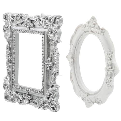 BAZEITFLOW Mini Cadres Photo Vintage 2 Pièces pour Accessoires Photo Portatifs Décoration Rétro pour Manucure et Bijoux Petits Cadres Blanc et Argenté Accessoires pour Studio et Prise de Vue