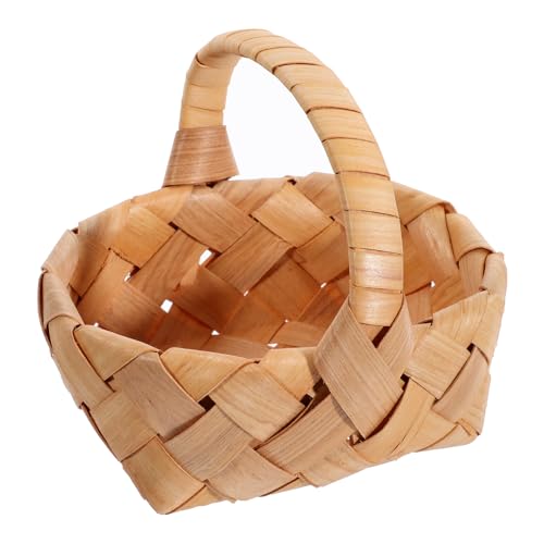 OSALADI Panier Décoratif en Bois Tressé Mini Poignée, Panier Portable pour Fruits, Accessoire Photo Polyvalent Léger, Corbeille Miniature pour Décoration et Prise de Vue Studio Photo