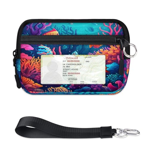 Tropical Oceans Submarine World Mini étui à cartes zippé pour homme et femme avec fenêtre pour carte d'identité, portefeuille portable et léger à fermeture éclair