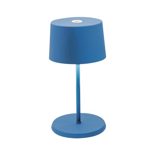 Zafferano, Lampe Olivia Mini, Lampe de Table Portable et Rechargeable avec Contrôle Tactile, Adaptée pour le Salon et l'Extérieur, Dimmer 2200-3000 K, Hauteur 22 cm, Couleur Bleu Capri