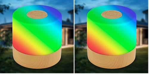 B.K.Licht - Mini lampe de table LED RGBW sans fil IP44 avec touche, changement couleur, batterie, câble USB-C, chevet, décorative, à extérieur, 7x7 cm, bois (Lot de 2)