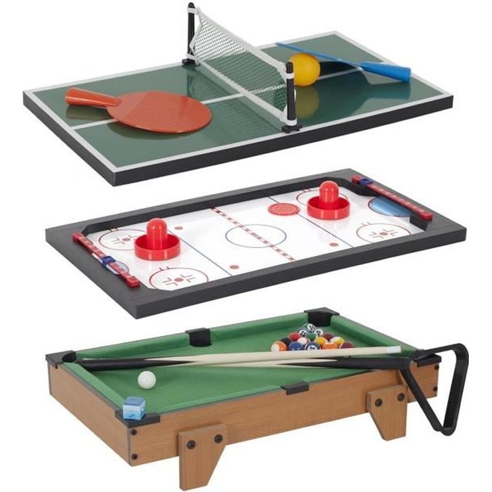 Table Multi Jeux 3 en 1 - Jeu de Air Hockey Mini Billard et Ping Pong Coffret pour toute la Famille - Les Jeux de votre Enfance