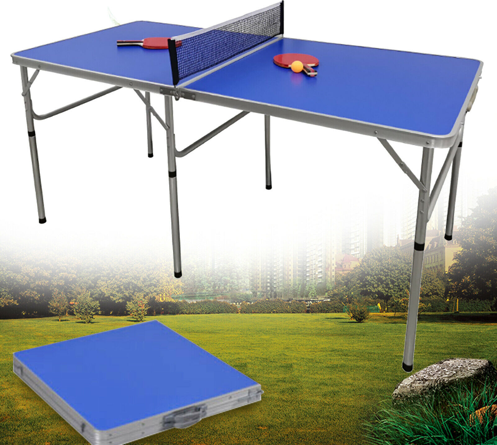 Mini table de ping pong 150x75cm - table pliable INDOOR bleue. avec 2 raquettes et 3 balles. valise de jeu pour utilisation