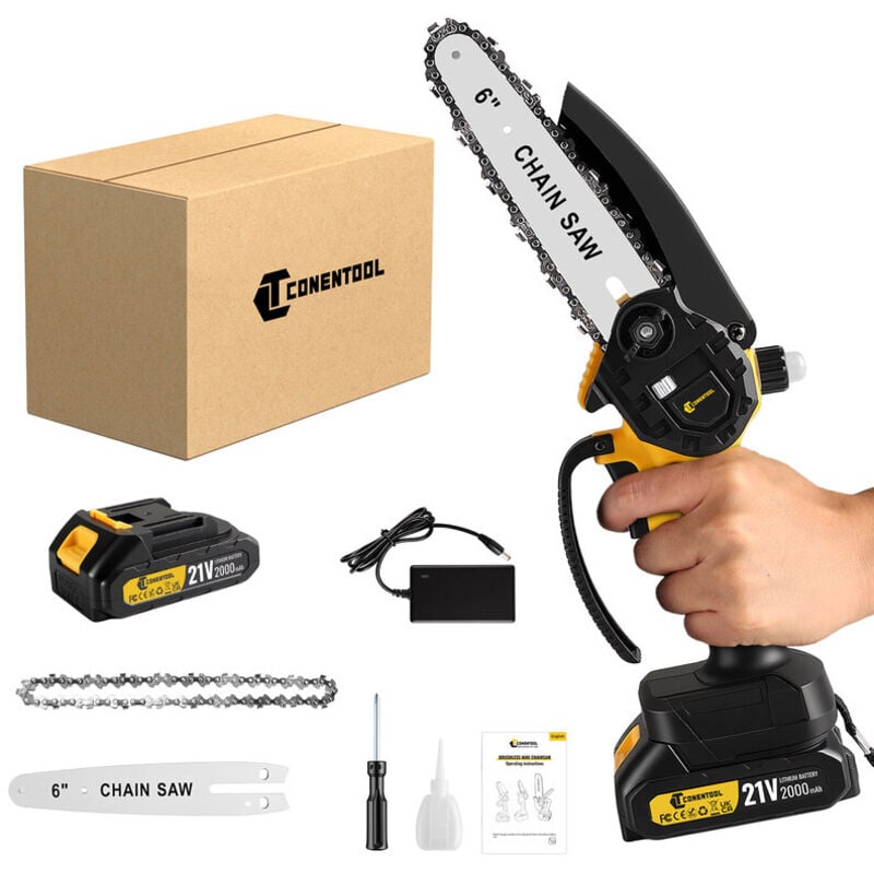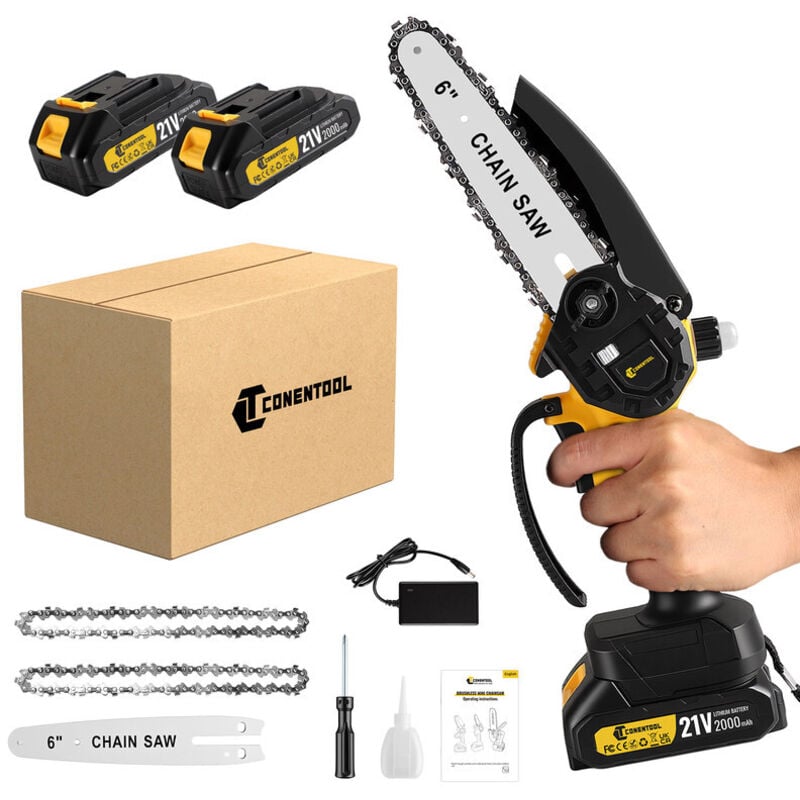 ZERONE Mini Tronçonneuse Électrique 4 Pouces - Plaque Guide de Tronçonneuse - Chaine de Tronçonneuse