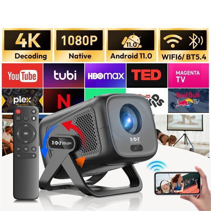 Mini vidéoprojecteur portable hy300 android 11 bluetooth , wifi rotation 180° partel blanc PTPROJ001
