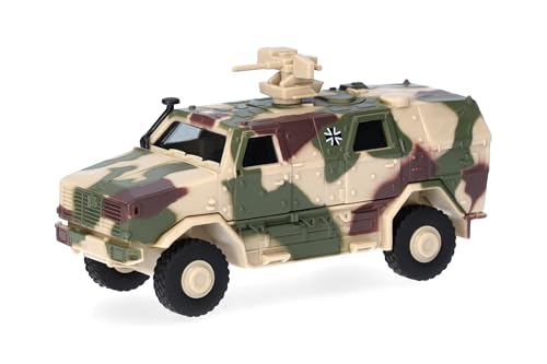herpa Modèle Militaire Véhicule de Transport Tout-Protection (ATF) Dingo avec FLW 200, décoré, Miniature à l'échelle 1:87, Objet de Collection, fabriqué en Allemagne, Plastique