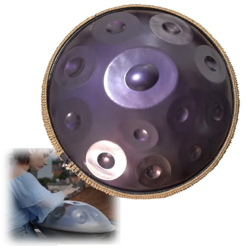 Handpan Drum D Minor 9/10/12 Notes 22 pouces, tambour de main 432/440 HZ, Instrument de Musique Professionnel handpan adulte steel tongue drum(Purple,12 Notes(432Hz))
