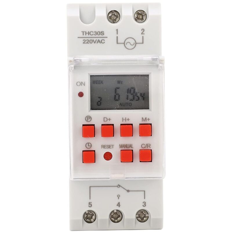 Interrupteur de minuterie, THC15A 220-240VAC 16A Interrupteur de minuterie numérique sur rail DIN Interrupteur de minuterie programmable numérique pour lampe, chauffe-eau, climatiseur, panneau d'affic