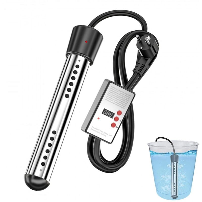 Chauffe-Eau À Immersion 2000W, Acier Inoxydable 304,Chauffe-Baignoire, Indicateur de Température, Chauffe-Eau À Immersion Électrique,Minuterie